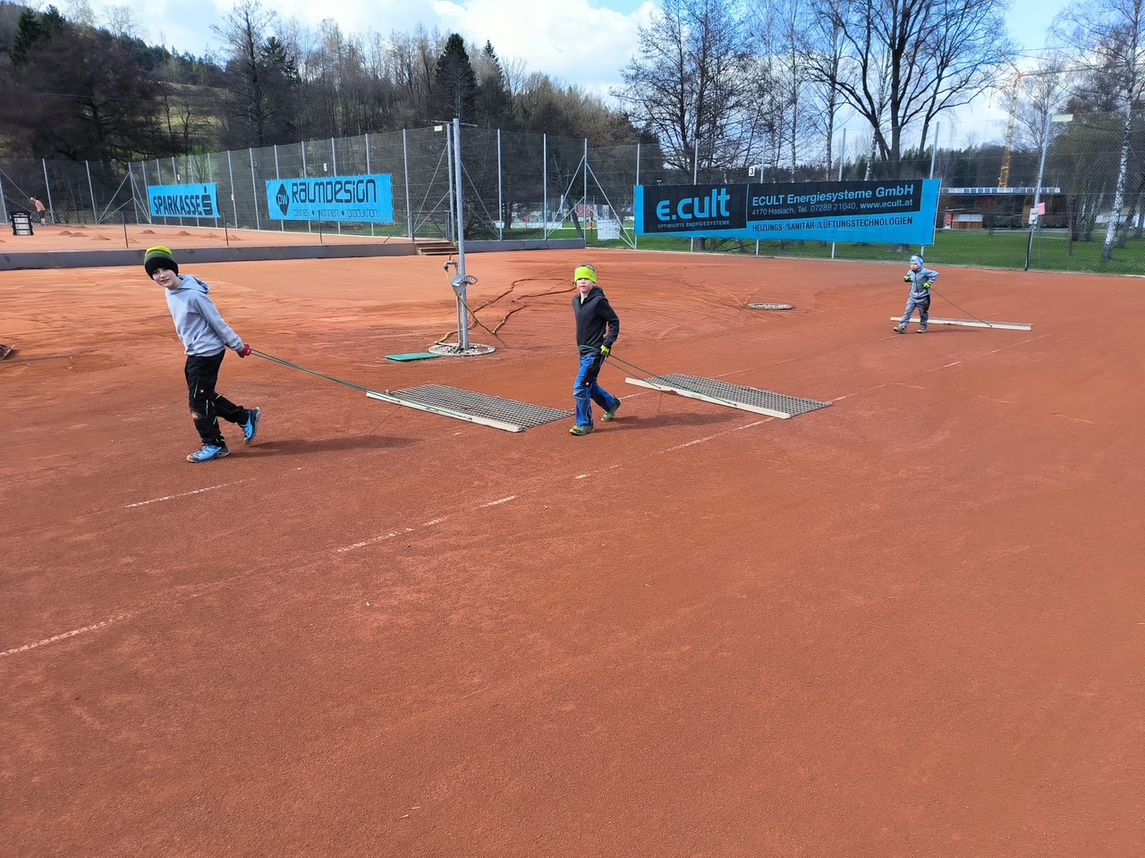 Wir möchten uns bei den vielen „freiwilligen“ Helfern bedanken, die in mehr als 150 Arbeitsstunden die Plätze wieder in einen exzellenten Zustand brachten. Besonderer Dank geht wie jedes Jahr an unseren Ehrenobmann Sepp, der uns nicht nur fachmännisch anleitete, sondern auch das so wichtige Walzen während der Woche übernahm.